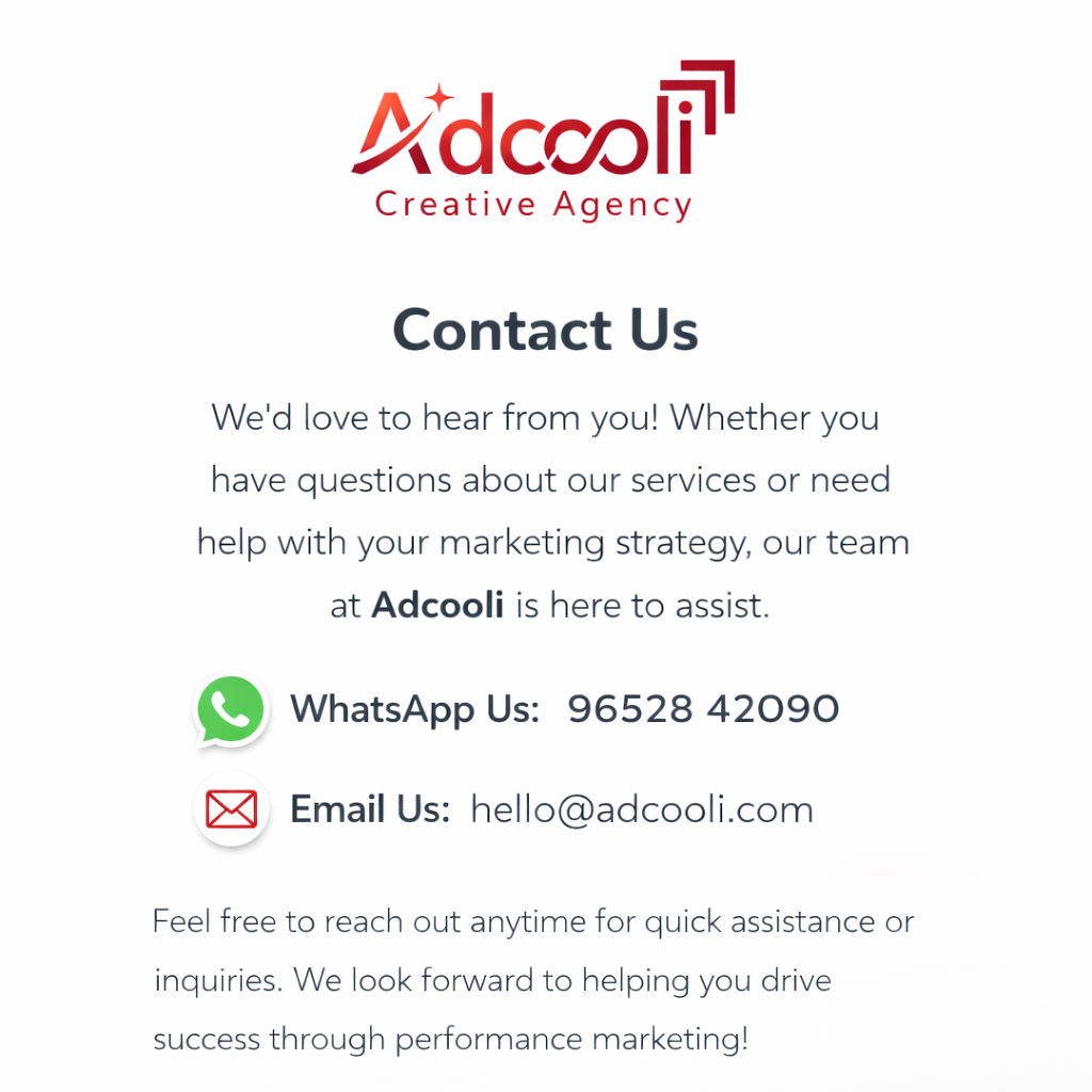 Whether you have questions about our services or need help with your marketing strategy, our team at Adcooli is here to assist.